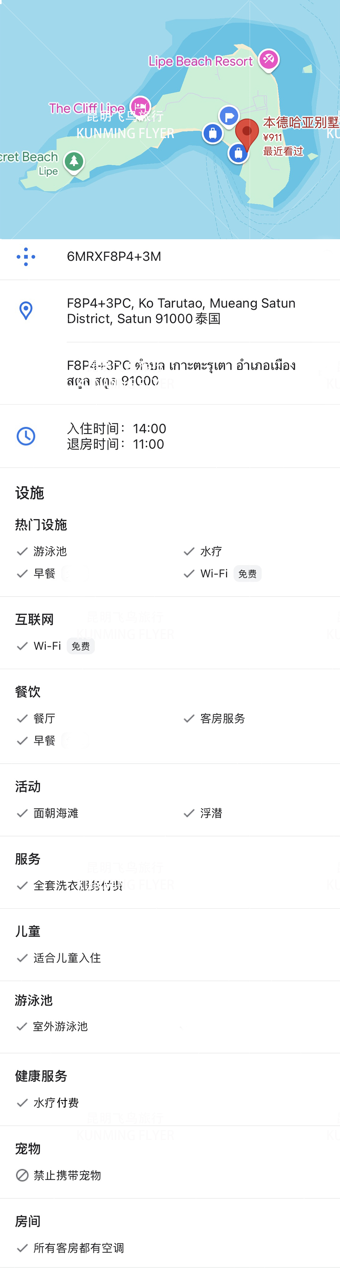 费用包含 丽贝岛本德哈亚酒店Bundhaya Villa1晚住宿;
