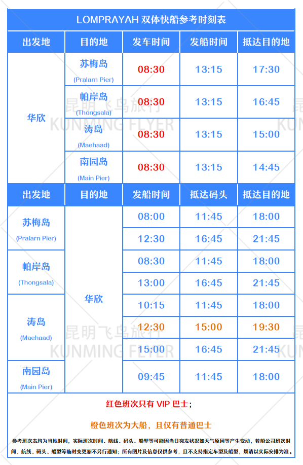 4. 上述时间均为商品当地时间,班次表仅供参考,具体时间可能因天气、路况等原因而变化;