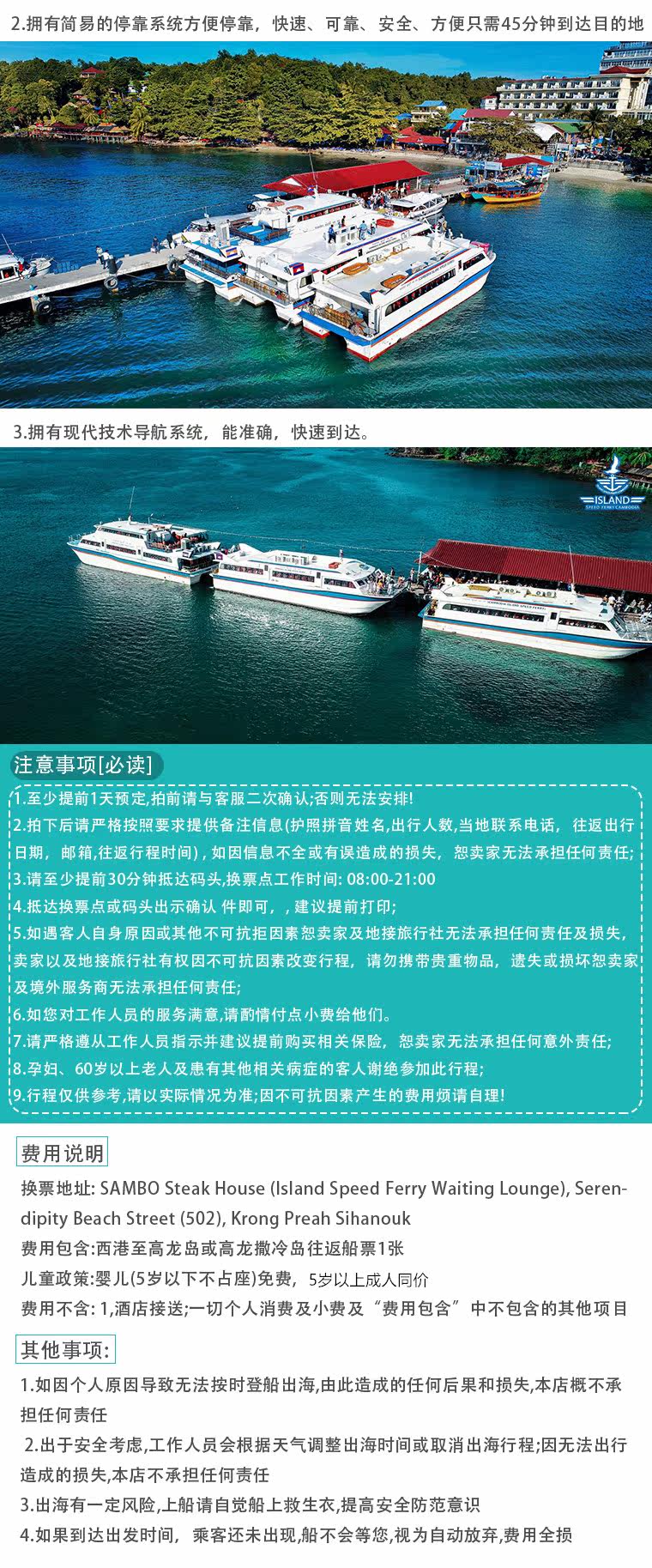费用包含 西港到高龙撒冷岛(Saracen Bay Beach)单程船票;