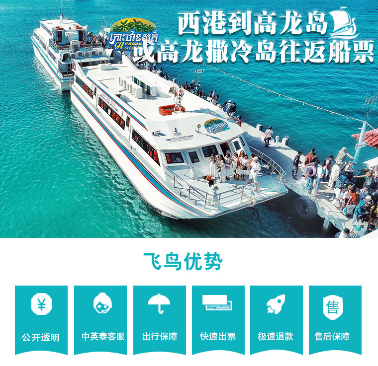 西港-高龙撒冷岛船票 Sihanoukville - Koh Rong Samloem (Saracen Bay Beach)